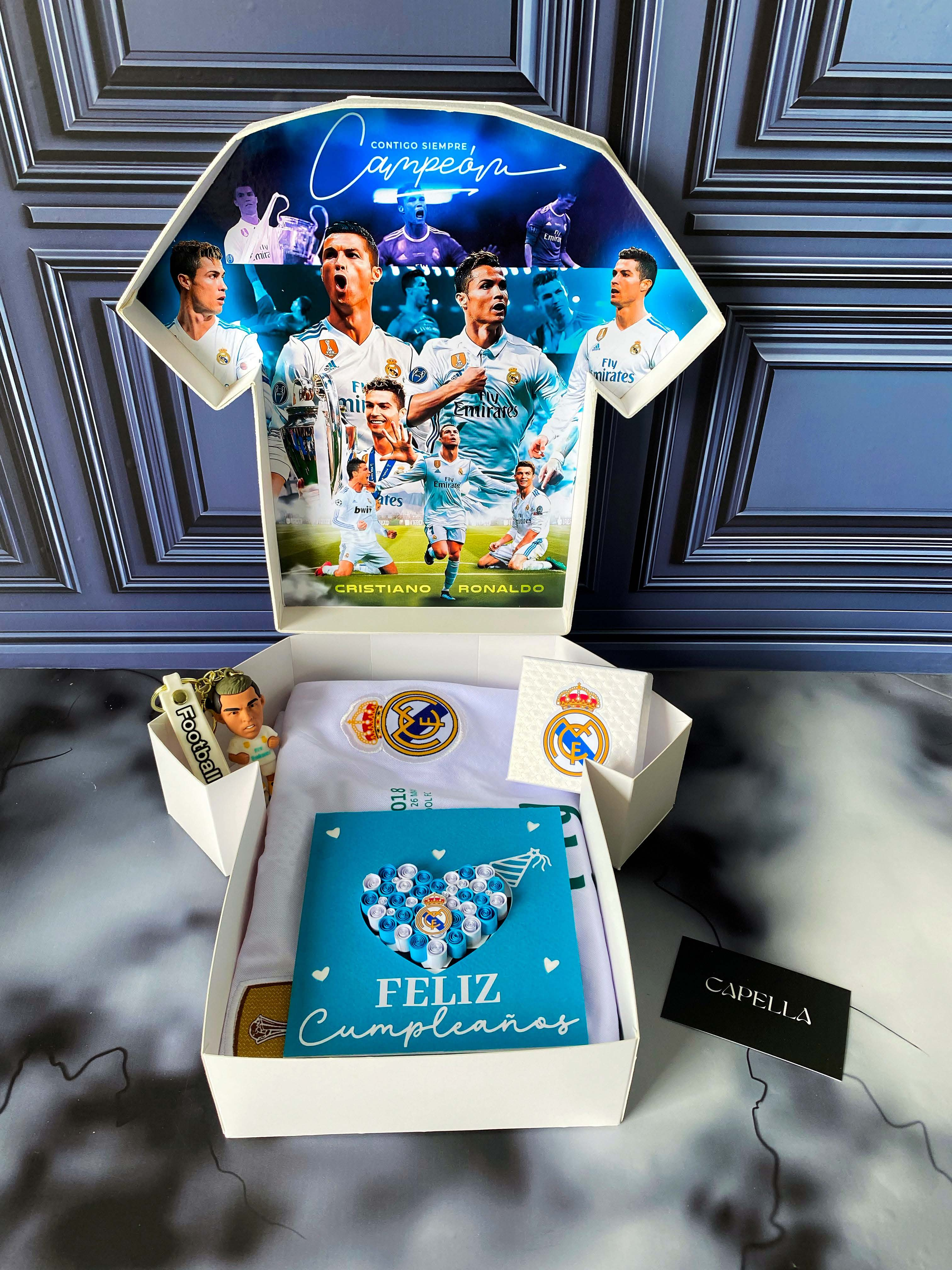 - Caja en forma de camiseta, material foldcote 29X31 cm