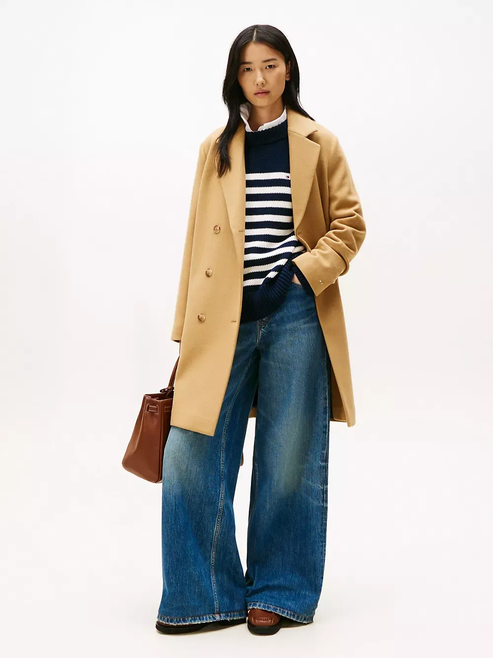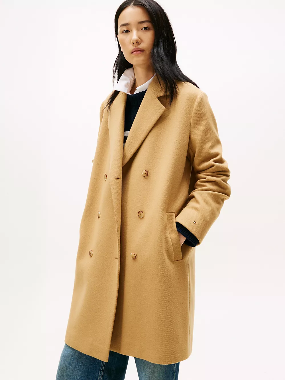 Tommy Hilfiger women's coat. Our timeless double-breasted coat features oversized lapels and traditional detailing to retain a simple, classic look. This versatile outer layer is made from a toasty wool-blend, so you'll feel warm without the bulk.